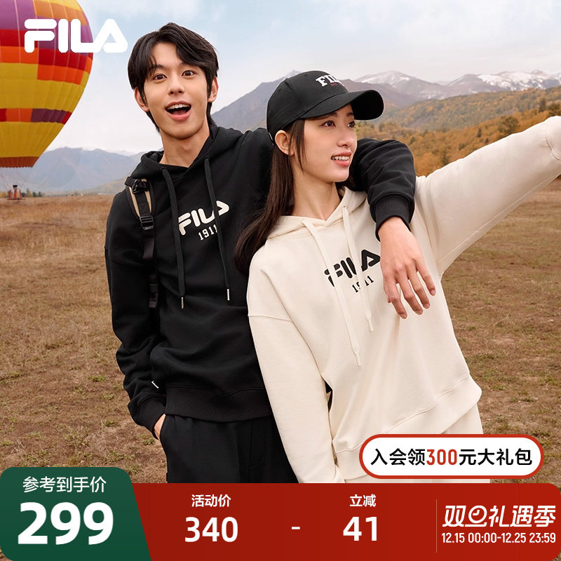 FILA 斐乐官方运动卫衣女秋季新款连帽男情侣装加绒保暖宽松帽衫