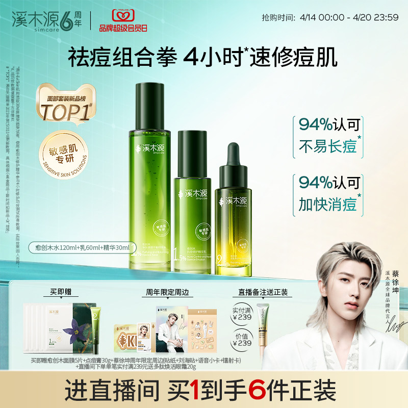 溪木源愈创木水乳套装油痘敏感肌抗痘抑痘舒缓修护控油护肤品男女