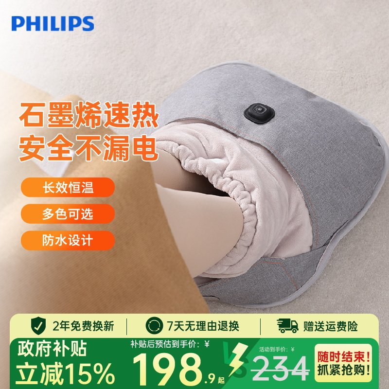飞利浦暖脚宝石墨烯发热暖暖鞋办公室脚冷暖脚神器插电防水保暖鞋