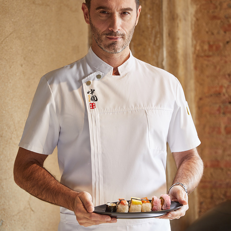 厨师工作服男短袖中国风高档餐饮酒店定制烘焙西餐厨师服短袖厨衣