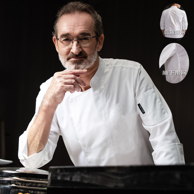高端厨师工作服长袖夏季短袖透气春夏装厨房烘焙师西餐厨师服高级