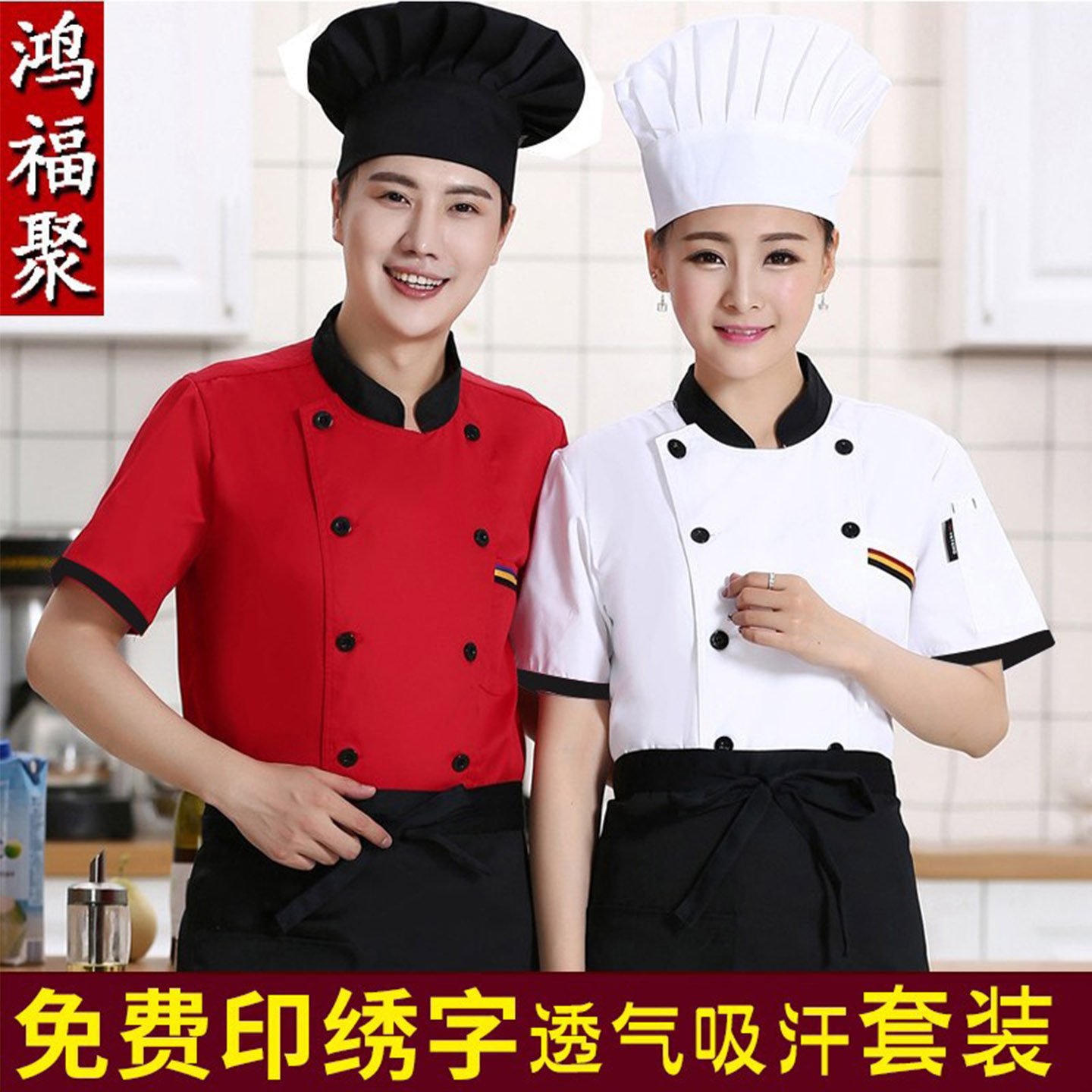 厨师工作服装男短袖透气高端酒店后厨西餐厅女厨师服长袖定制加大