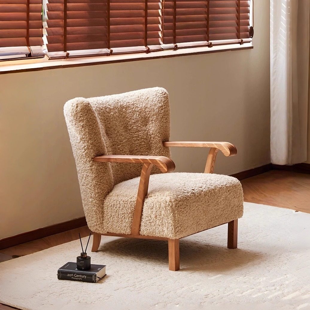 侘寂风实木单人沙发椅中古风单椅设计师胡桃木休闲客厅沙发靠背椅