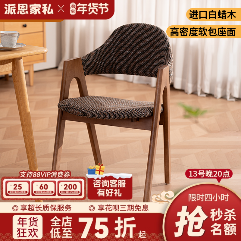 北欧实木餐椅轻奢单椅a字椅书椅靠背椅家用椅子书房木椅子餐桌椅