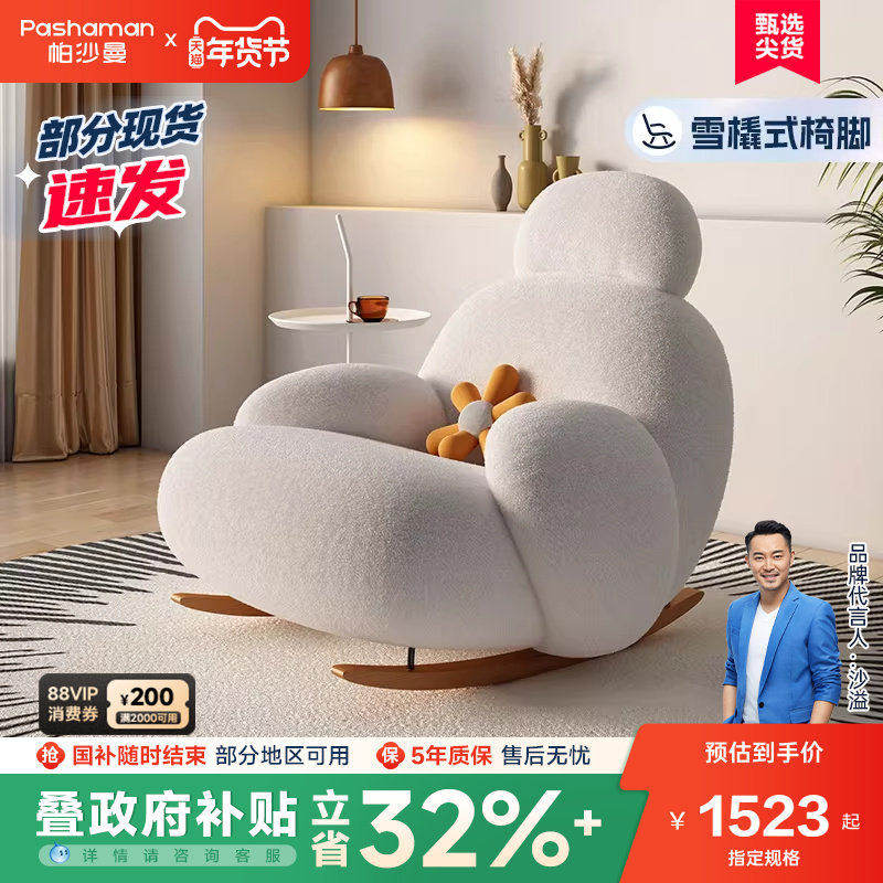 帕沙曼大白摇摇椅客厅单人沙发躺椅阳台休闲椅奶油网红摇摇椅单椅