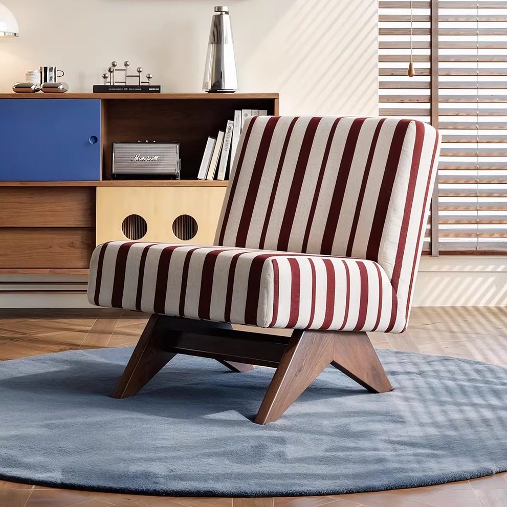 畔所/中古复古实木单人沙发椅 侘寂风无扶手设计客厅休闲靠背单椅