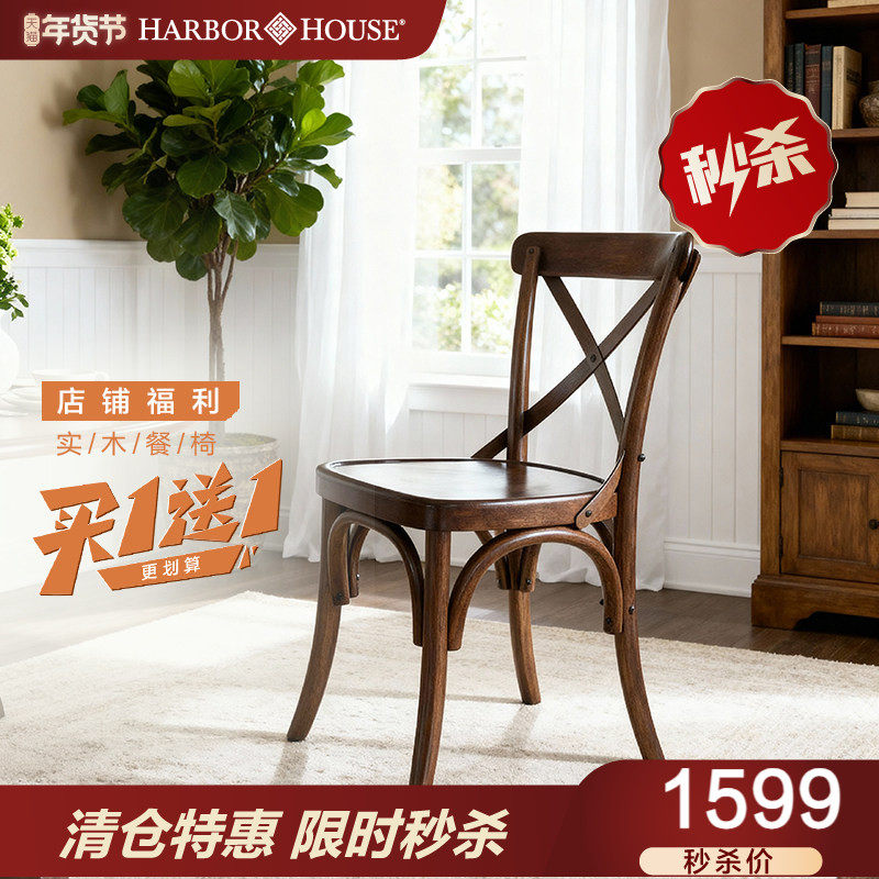 【百补】HarborHouse美式复古餐厅餐椅家具实木单椅arloPro椅子
