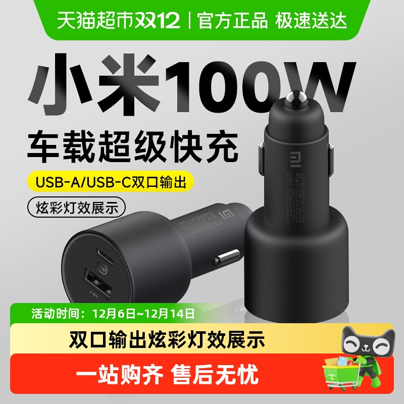 小米车载充电器快充版1A1C 100W苹果安卓闪充通用多功能智能车充