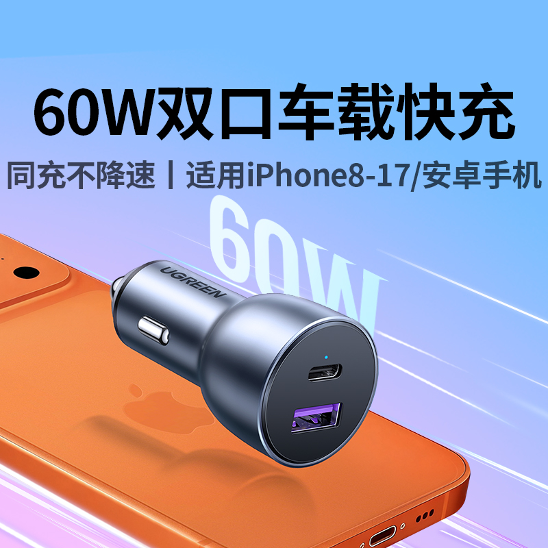 绿联车载充电器超级快充头适用苹果17汽车转换插头点烟器充电器