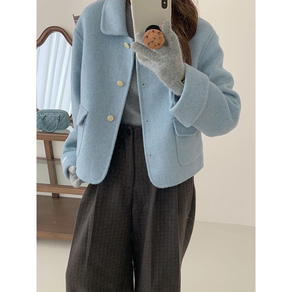2025秋冬新款双面羊绒大衣女短款小个子韩版宽松西装领羊毛呢外套