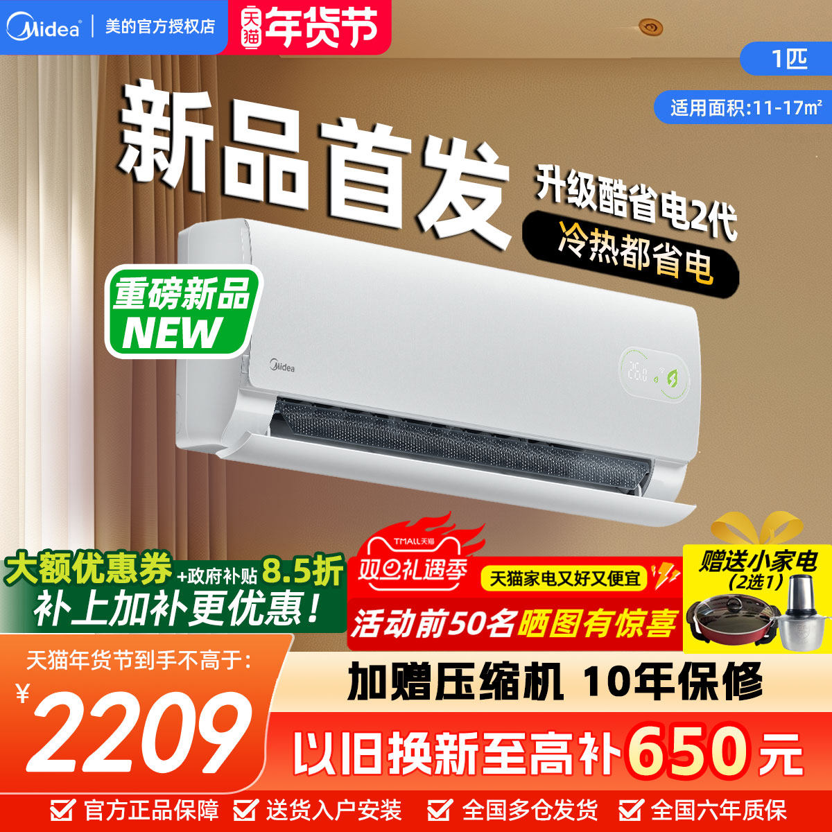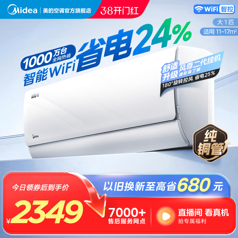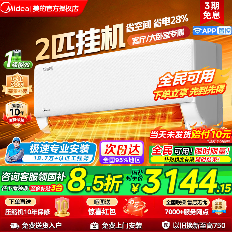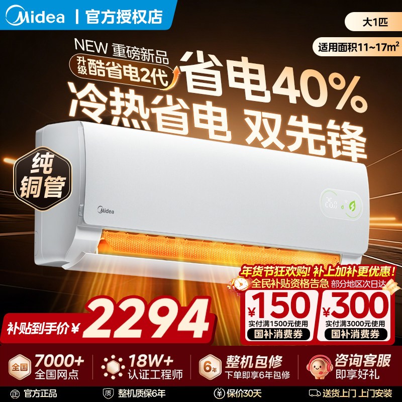 美的官方正品酷省电新款2代空调一级卧室大1.5匹家用冷暖挂机342