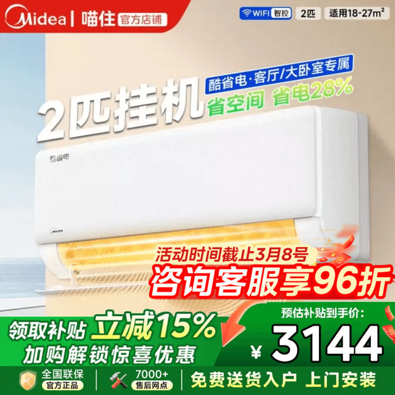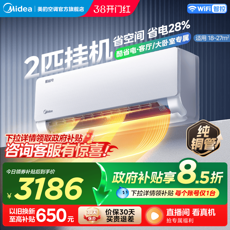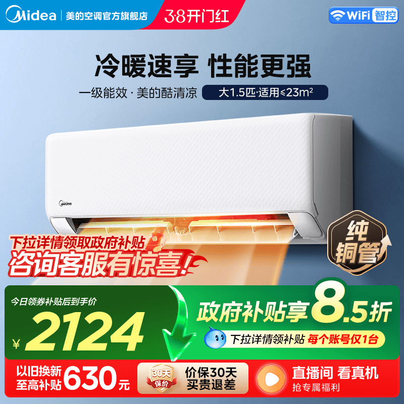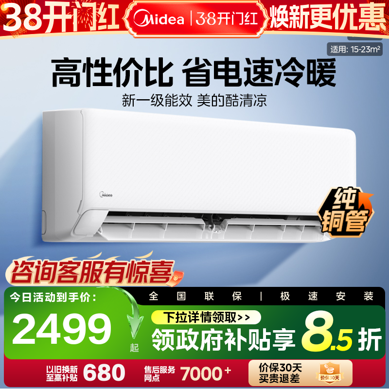 【全国补贴】美的官方空调2/3匹一级变频挂机冷暖家用大挂酷省电