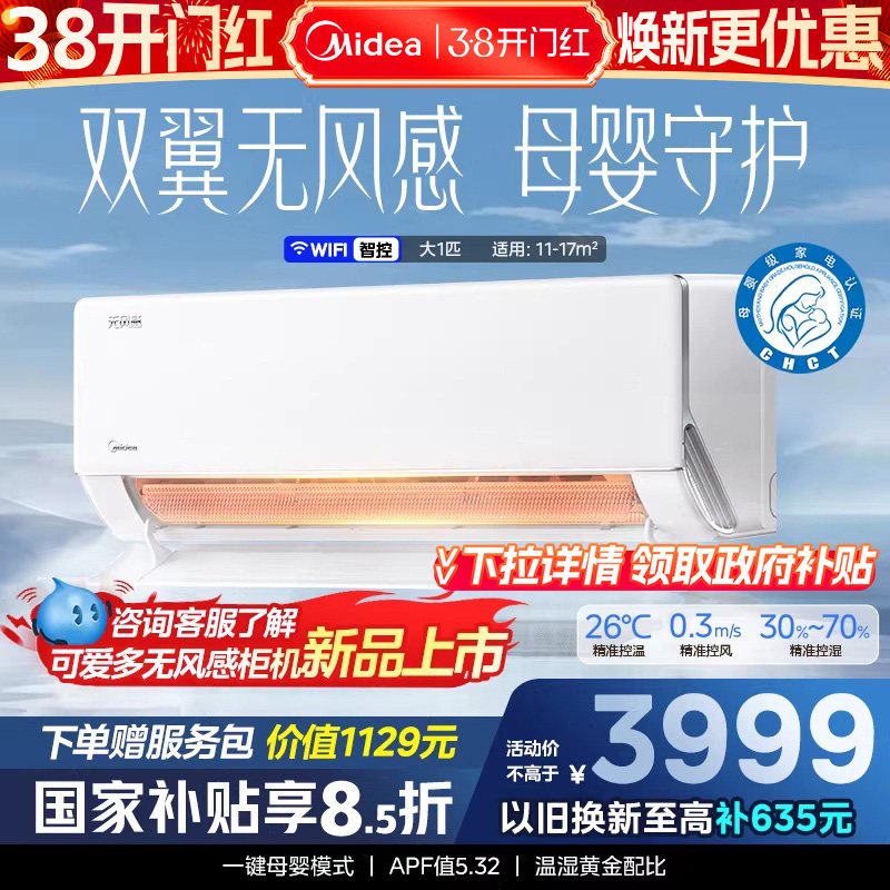 美的官方正品无风感WF1母婴级空调家用卧室一级变频大1匹除湿挂机