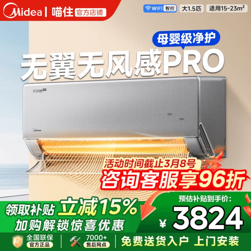美的官方正品家用无风感WF1 PRO母婴级空调一级变频1.5匹除湿挂机