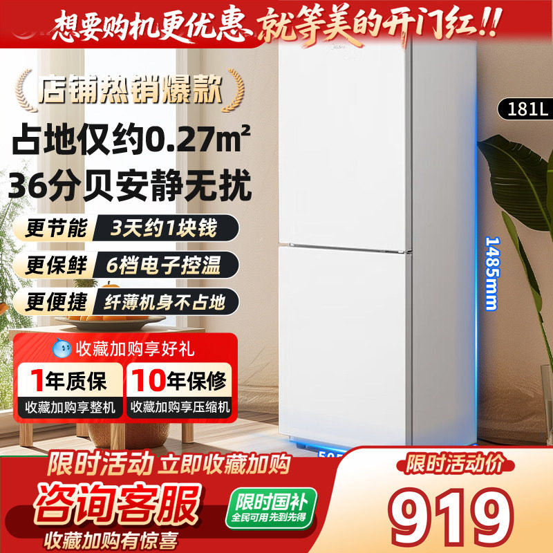 美的190双开门小冰箱家用小型租房宿舍节能白两门美的官方旗舰店