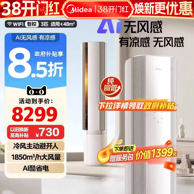 美的官方空调立柜式一级3匹客厅家用冷暖AI无风感WF1母婴级净护
