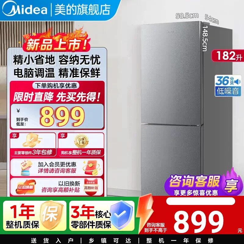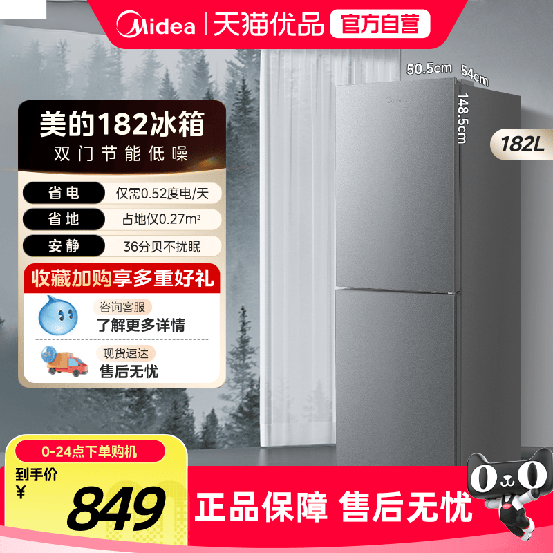 美的官方182L租房宿舍节能低噪冷冻冷藏电冰箱小型家用双开门两门