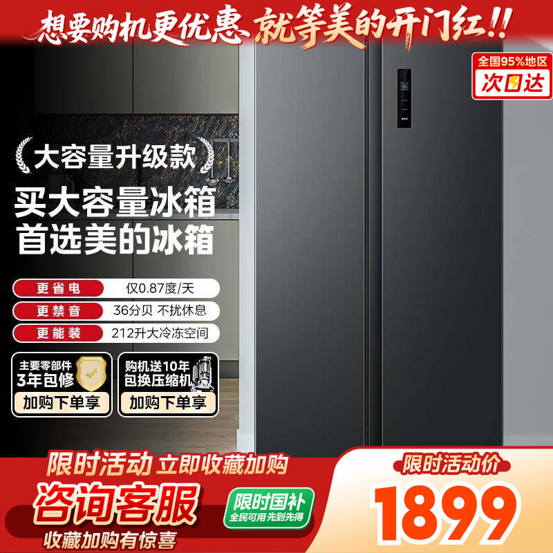 【以旧换新】美的407十字电冰箱对开双开家用超薄美的官方旗舰店