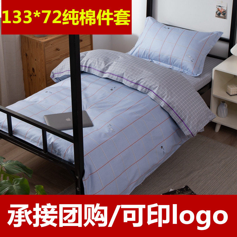 开学季纯棉学生宿舍三件套简约0.9上下铺寝室全棉床单被套1.2米床