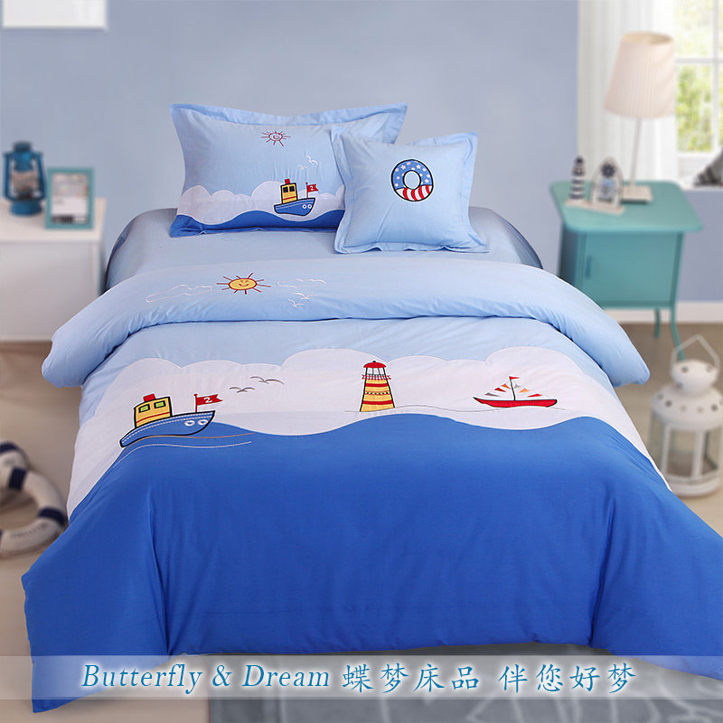 儿童床单四件套男孩纯棉卡通被套1.5米蓝色100全棉三件套1.2床笠