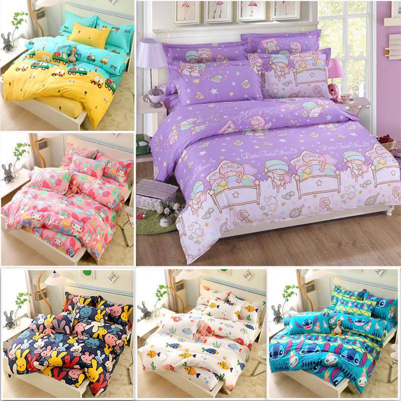 全棉加厚卡通四件套宿舍1.5m床y笠床单被套1.2儿童床上用品三件套