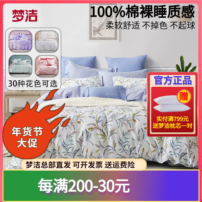 梦洁家纺全棉四件套被套248x248纯棉床上用品1.8m1.5正品1.2m床单