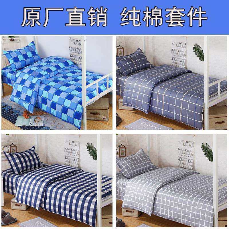 单人宿舍三件套纯棉厚学生单人床上下铺全棉床单被套1.2m床上用品