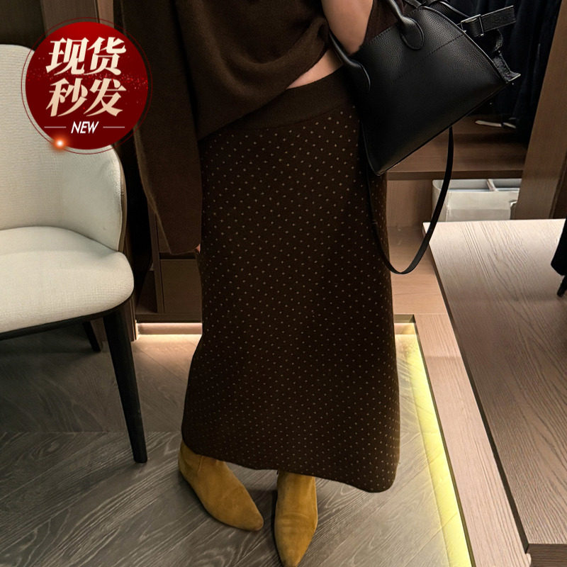 撞色波点羊绒针织半身裙女欧洲站2025冬装新款欧货女装A字裙子潮