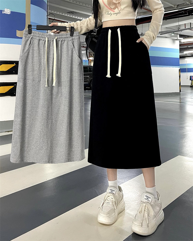 JUICE250322秋冬季韩系高腰显瘦A字半身裙女百搭防走光包臀短裙子