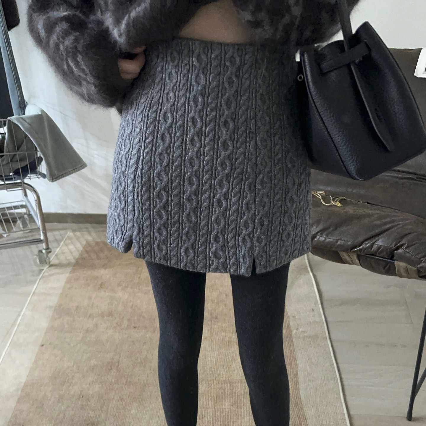 下摆开叉麻花纹羊绒半身裙女欧洲站2025冬装新款欧货女装A字裙潮