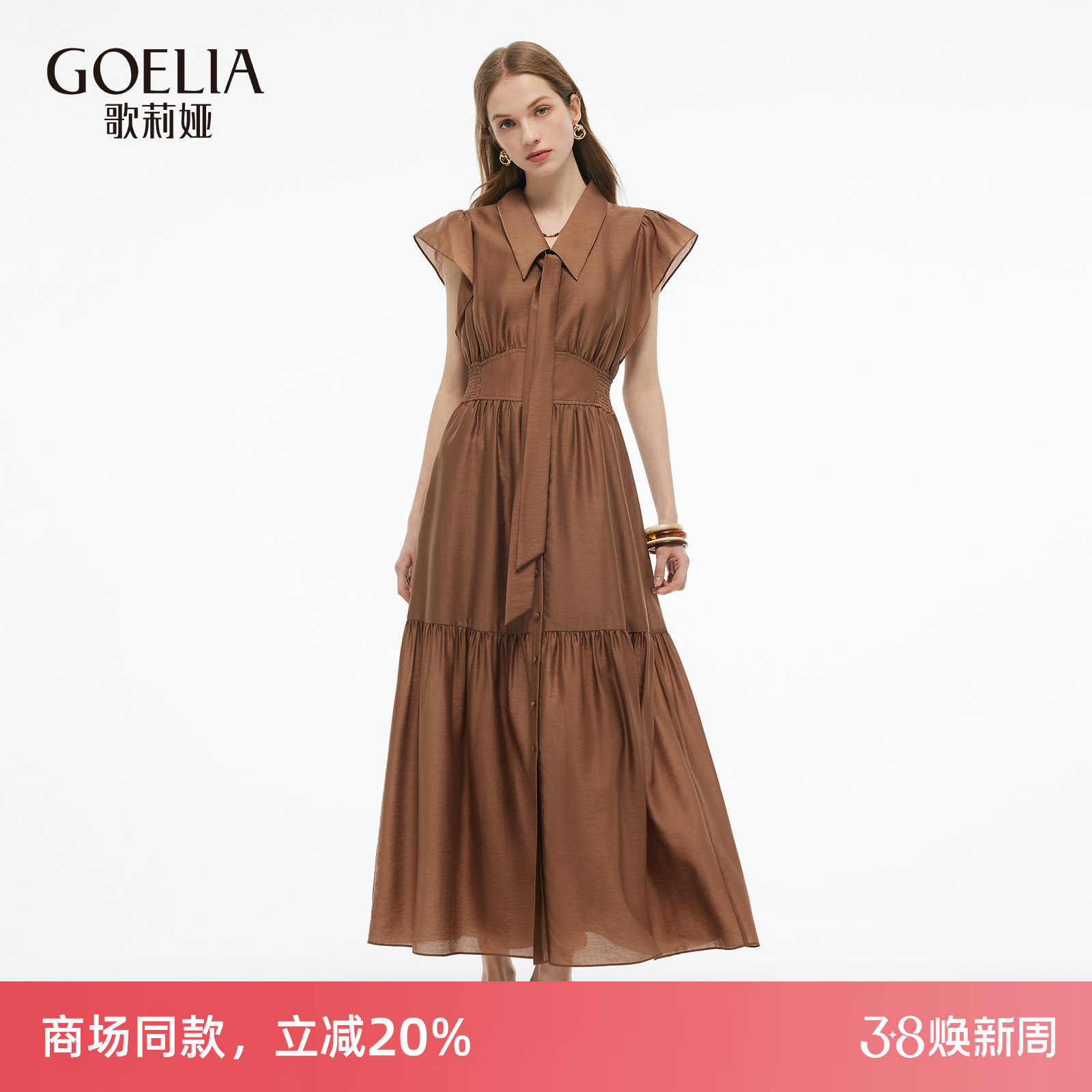 歌莉娅天丝连衣裙女夏季重要场合高知淡人穿搭飞袖裙子巨好看长裙