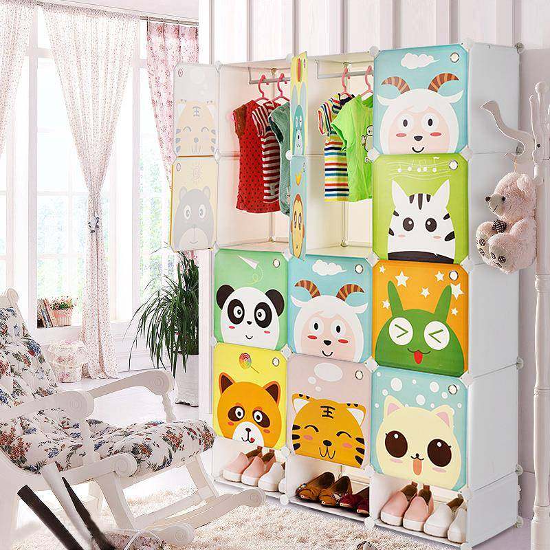 pp树脂宝宝卡通衣橱儿童简易组合衣柜婴儿玩具收纳整理省空间柜子