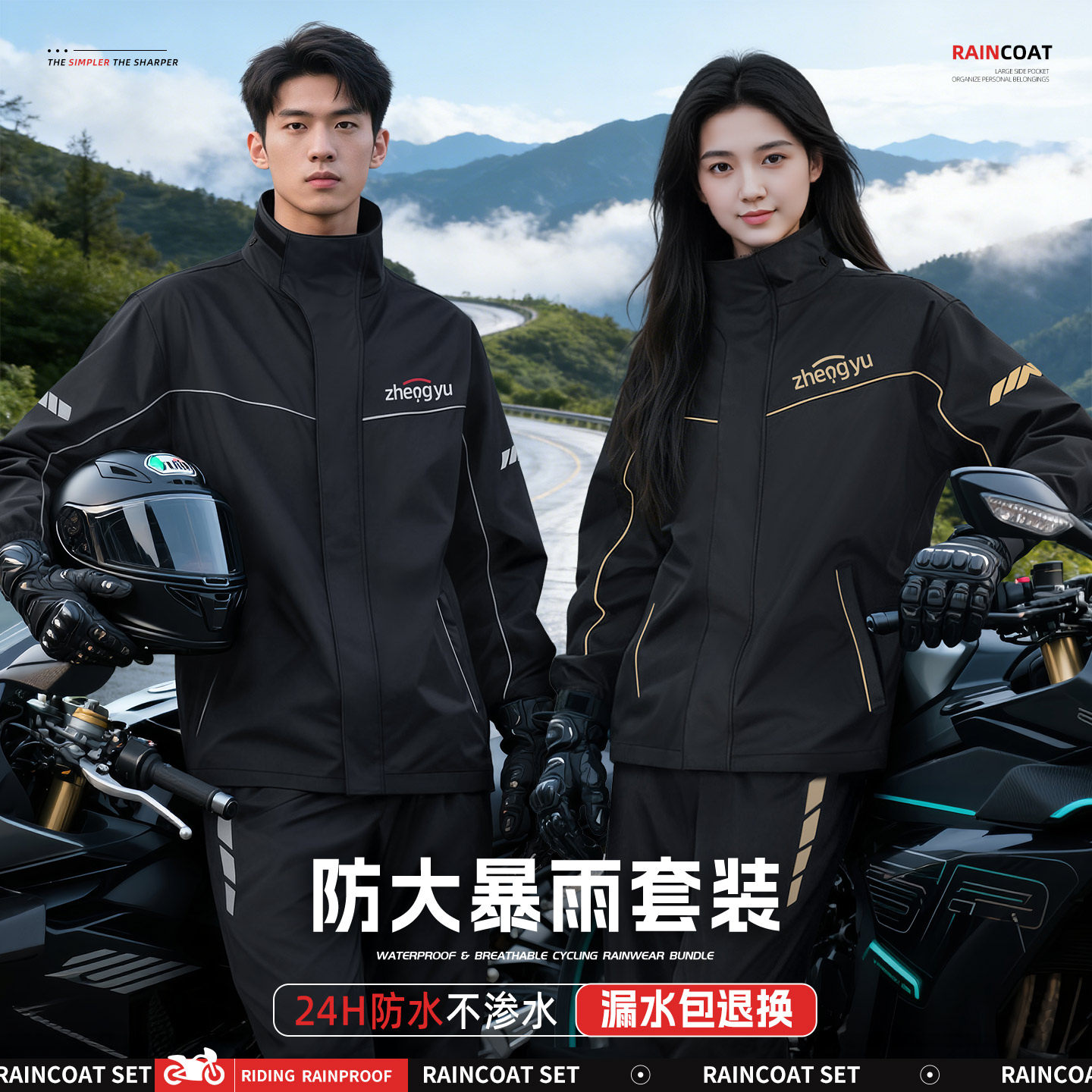 - 四季摩托车骑行服防水套装