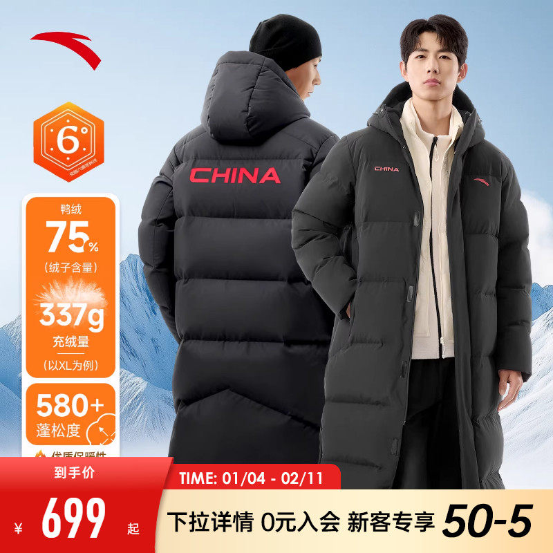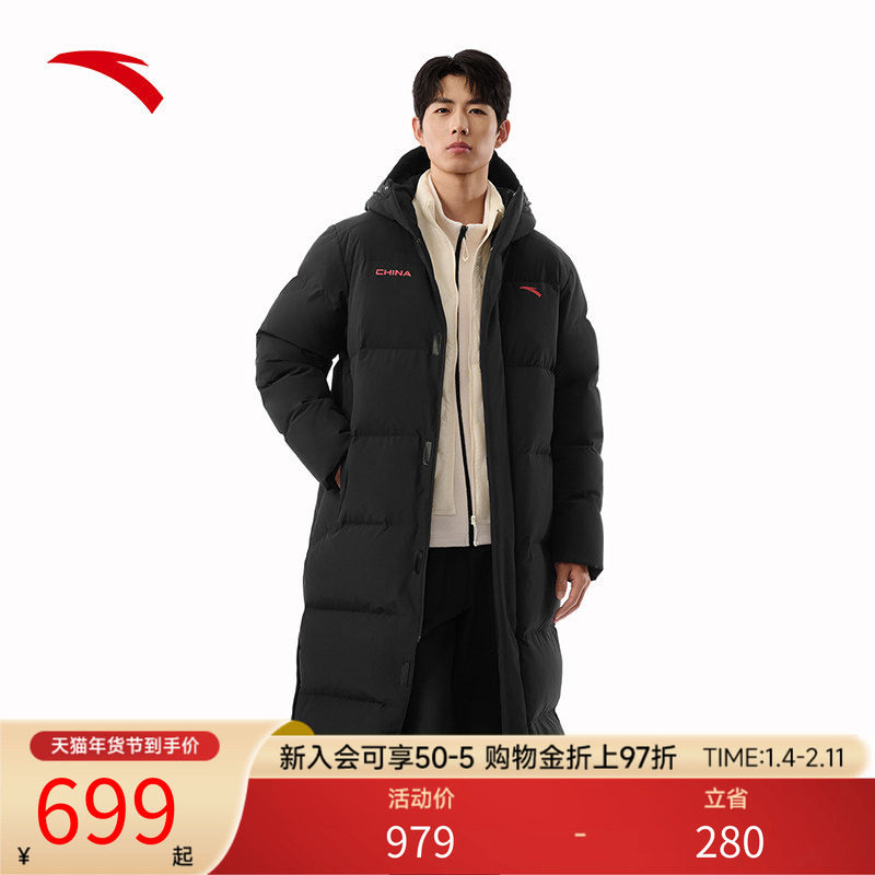 安踏羽绒服过膝长款运动羽绒服男士2026冬季防泼水加厚保暖外套