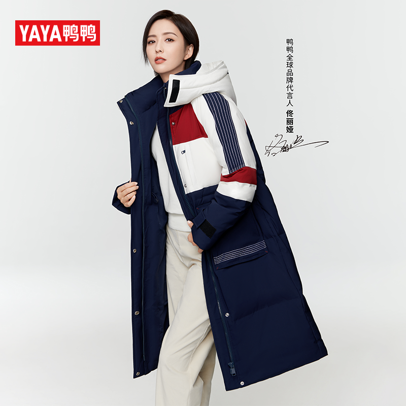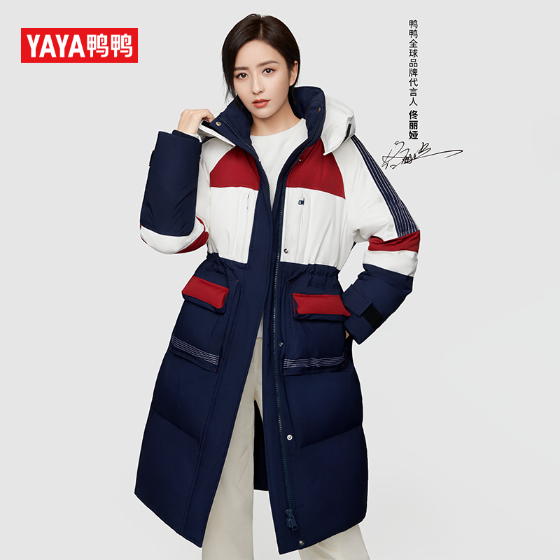 鸭鸭【佟丽娅同款】2025新款冬季长款羽绒服过膝连帽韩版外套女