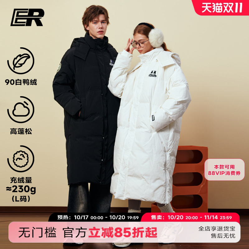 【明星同款】ER基础中长款过膝羽绒服男2025冬季保暖90白鸭绒外套