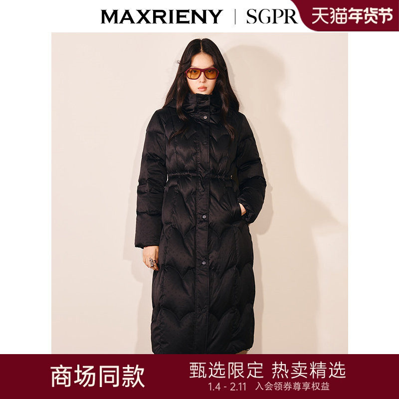 MAXRIENY摩登复古收腰X型连帽羽绒服过膝长款25冬款鸭绒保暖外套
