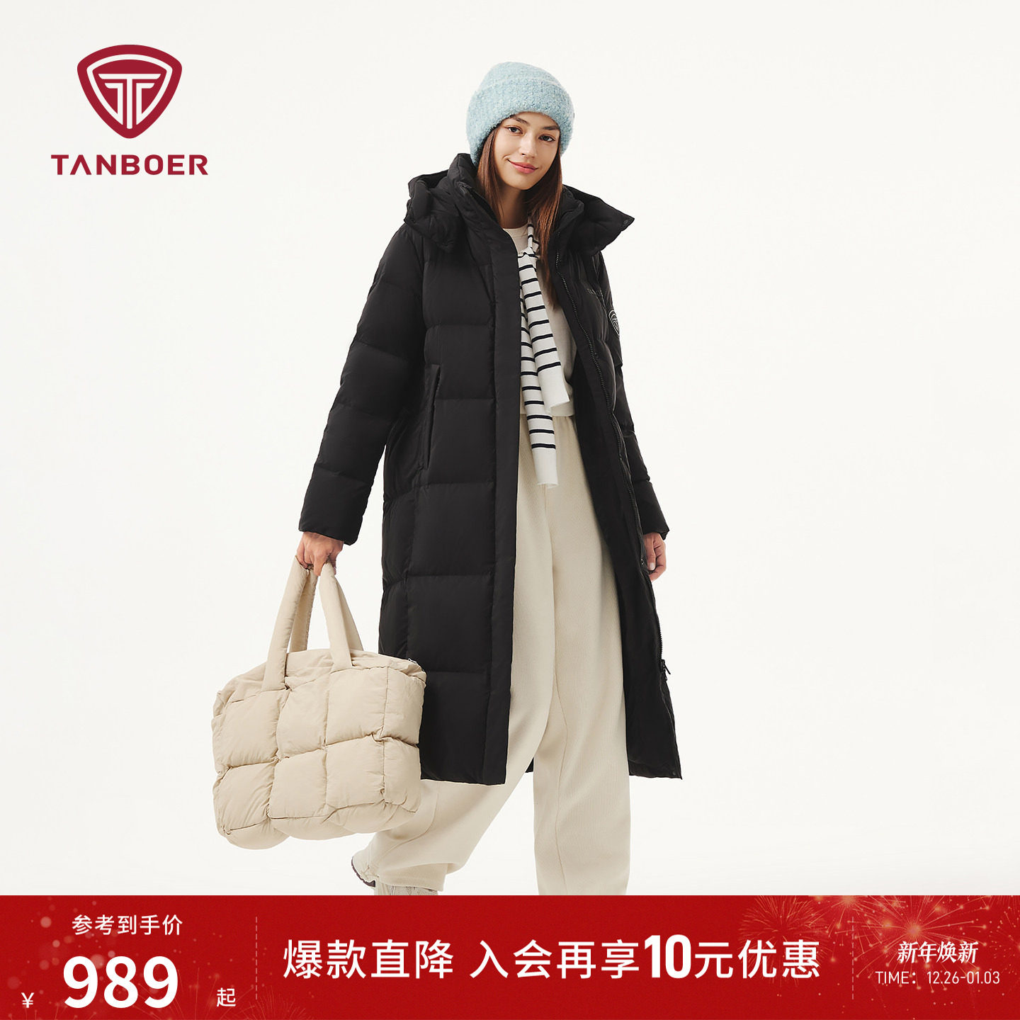 - 明星同款长款羽绒服女
