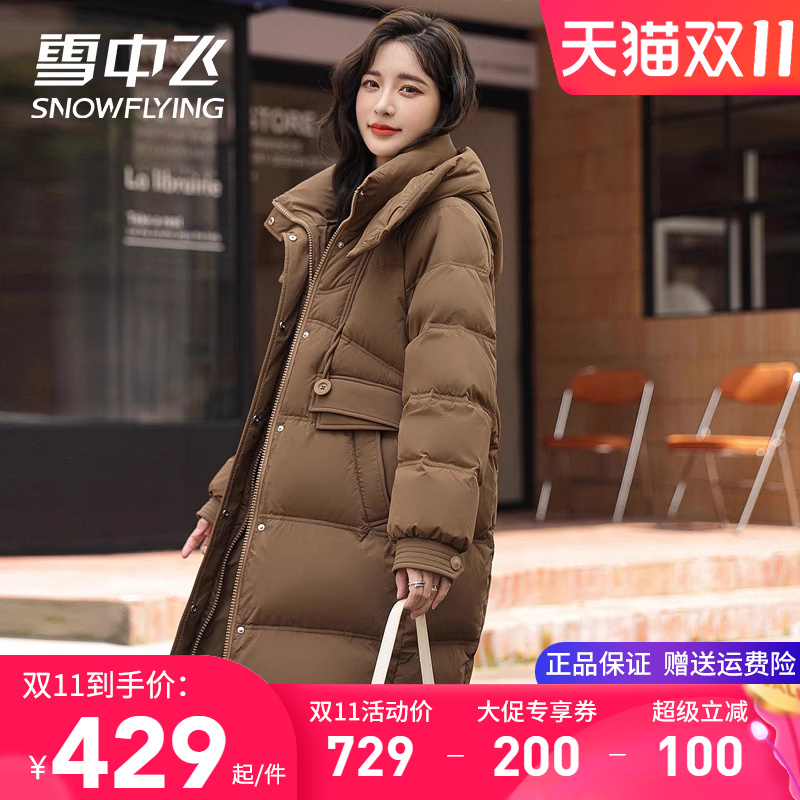 雪中飞女式羽绒服过膝长款洋气连帽上衣加厚抗寒中青年人冬季外套