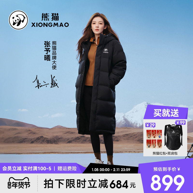 熊猫户外高领长款羽绒服过膝2025新款厚实升温抗寒防雪保暖外套