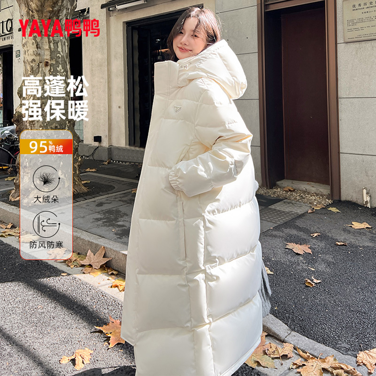 雅鹿中戏长款羽绒服女冬季2025新款超长过膝宽松加厚纯色鸭绒外套