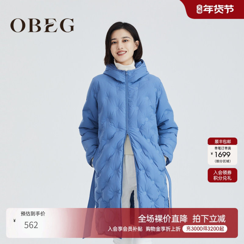 OBEG欧碧倩冬连帽中长款羽绒服过膝御寒保暖外套104241