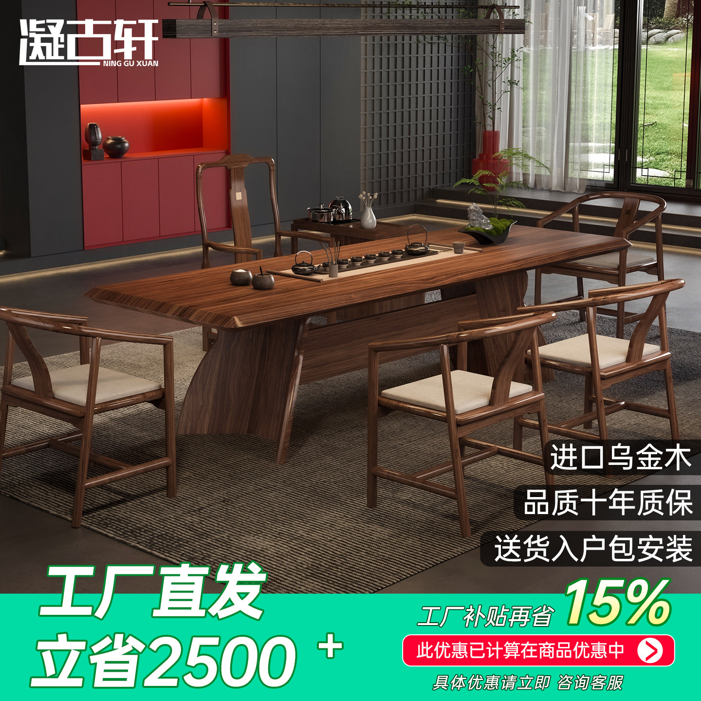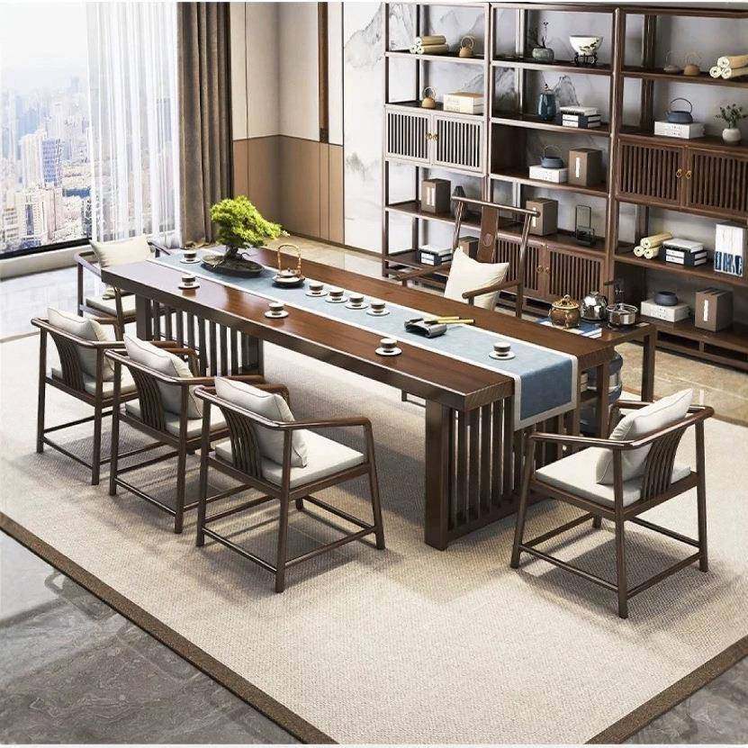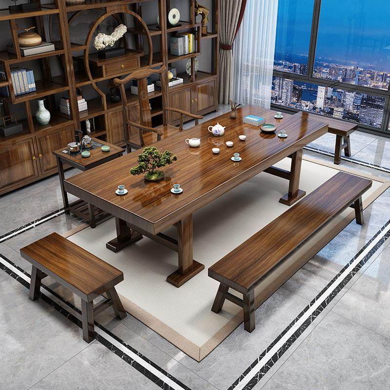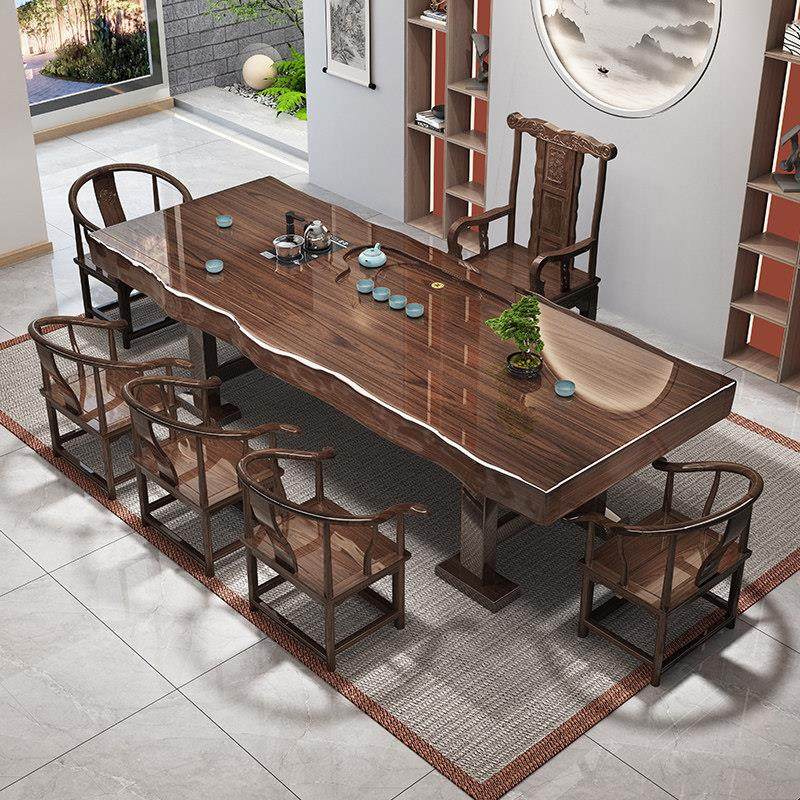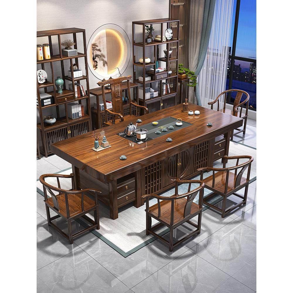 南美胡桃木茶桌椅新中式会所实木大板桌办公室接待一体两用泡茶桌
