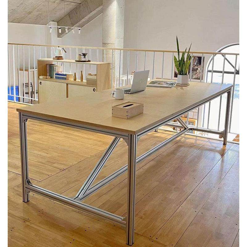 极简桦木会议桌创意工作室电脑桌铝型材实木大板桌现代长条桌定制