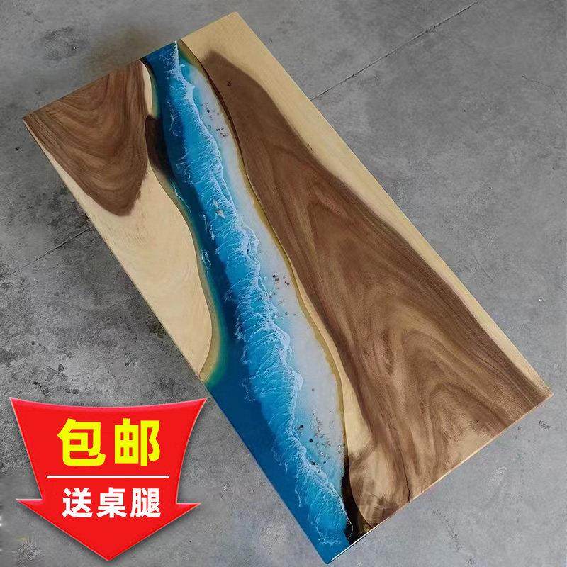 环氧树脂河流桌海浪胡桃实木大板茶桌实木原木茶板桌餐桌茶几家俱