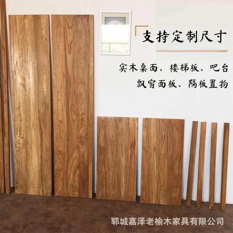 定制老榆木木板隔板飘窗吧台板桌面板实木大板风化老木板楼梯踏板