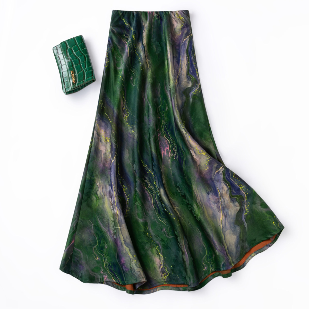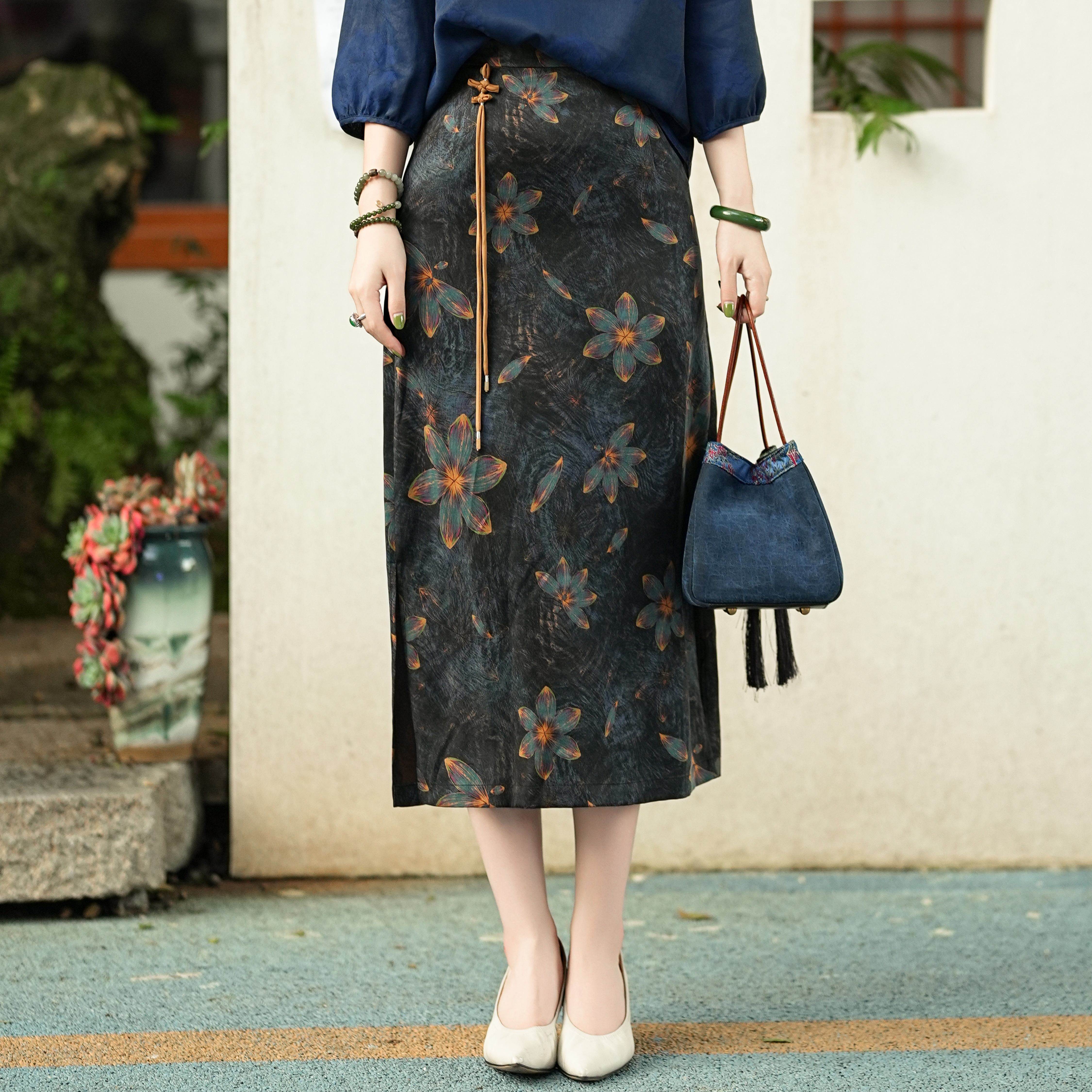浒城古娘新款真丝桑蚕丝高腰A字百搭新中式国风香云纱半身裙女秋