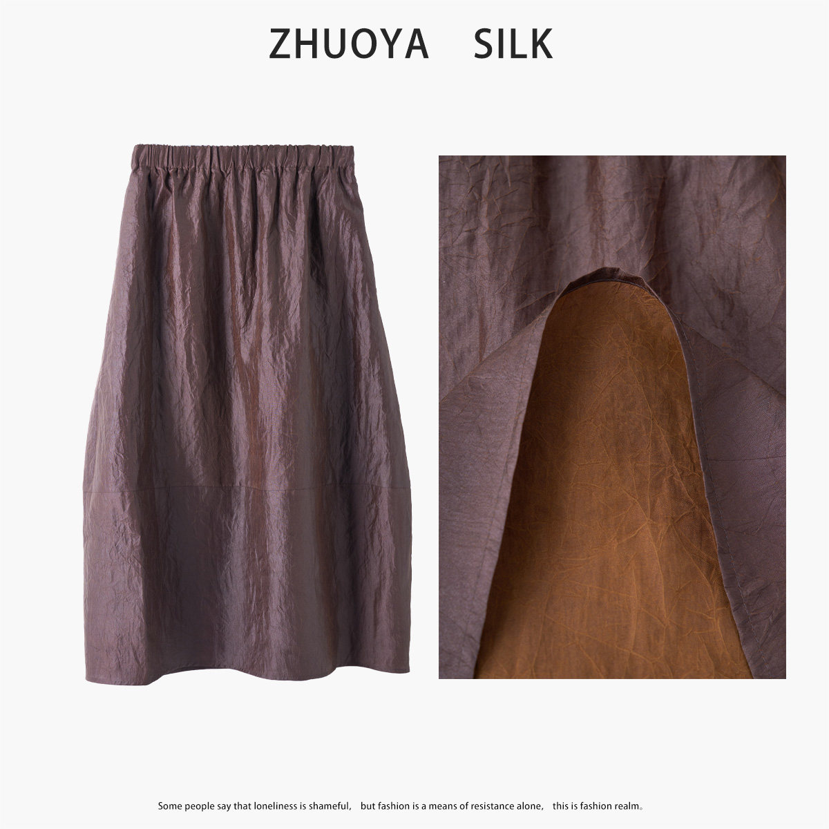 琸娅100%桑蚕丝香云纱肌理感半身裙高腰遮胯垂感灯笼裙气质百搭