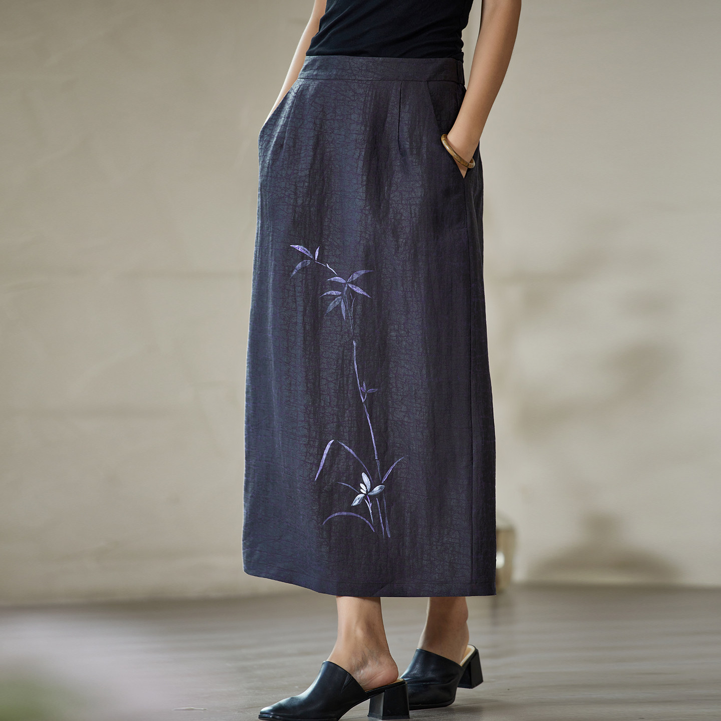 西子/【睡莲】非遗香云纱重磅25姆米桑蚕丝印花A字半身裙/BQXS047
