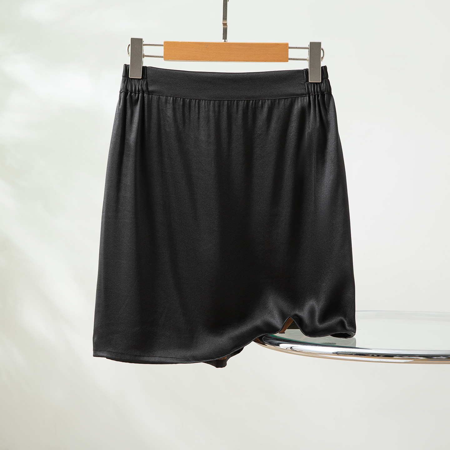 奢感重磅~缎面香云纱黑色真丝松紧腰直筒半身裙桑蚕丝纯色一步裙